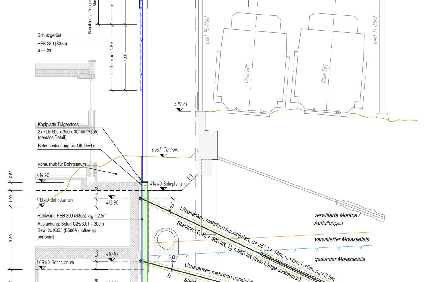 Länge Schutzgerüst ca. 140 m Ankerlänge ca. 3'050 m