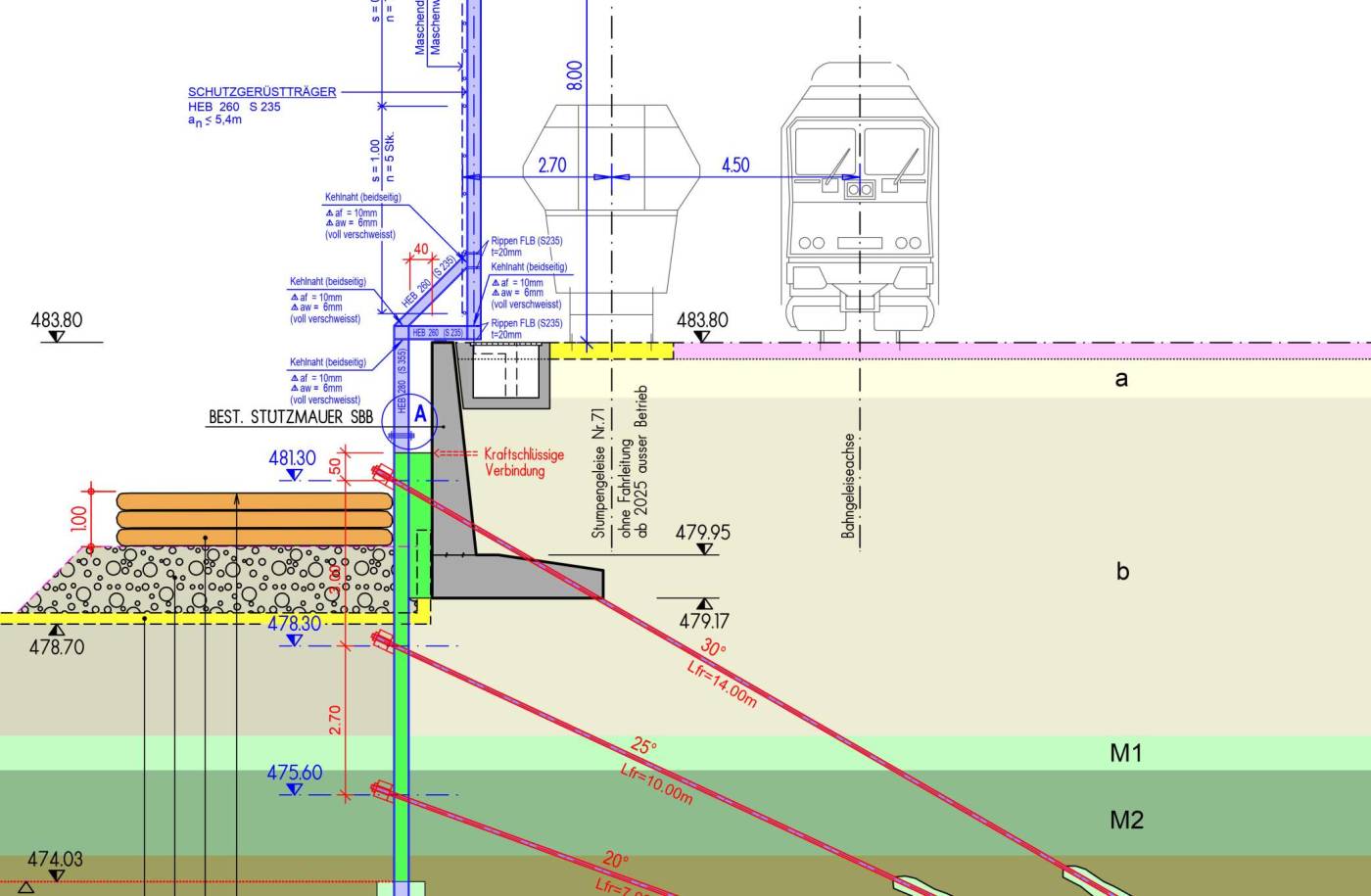 Länge Schutzgerüst ca. 60 m Ankerlänge ca. 1'000 m
