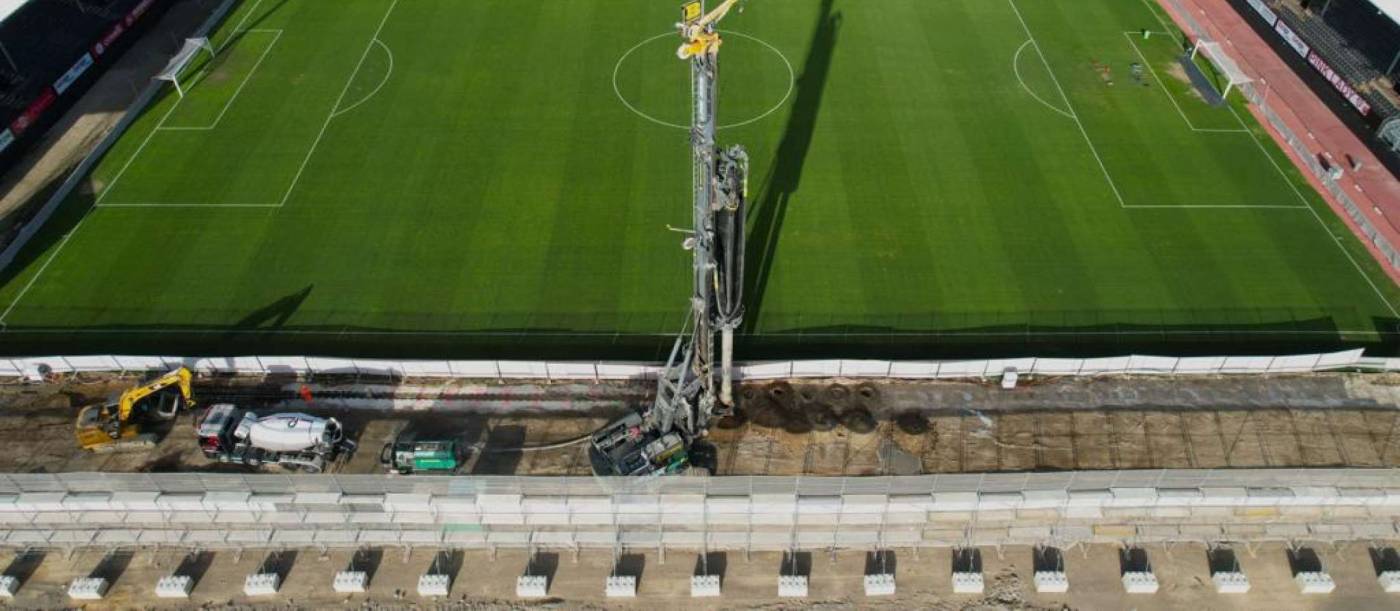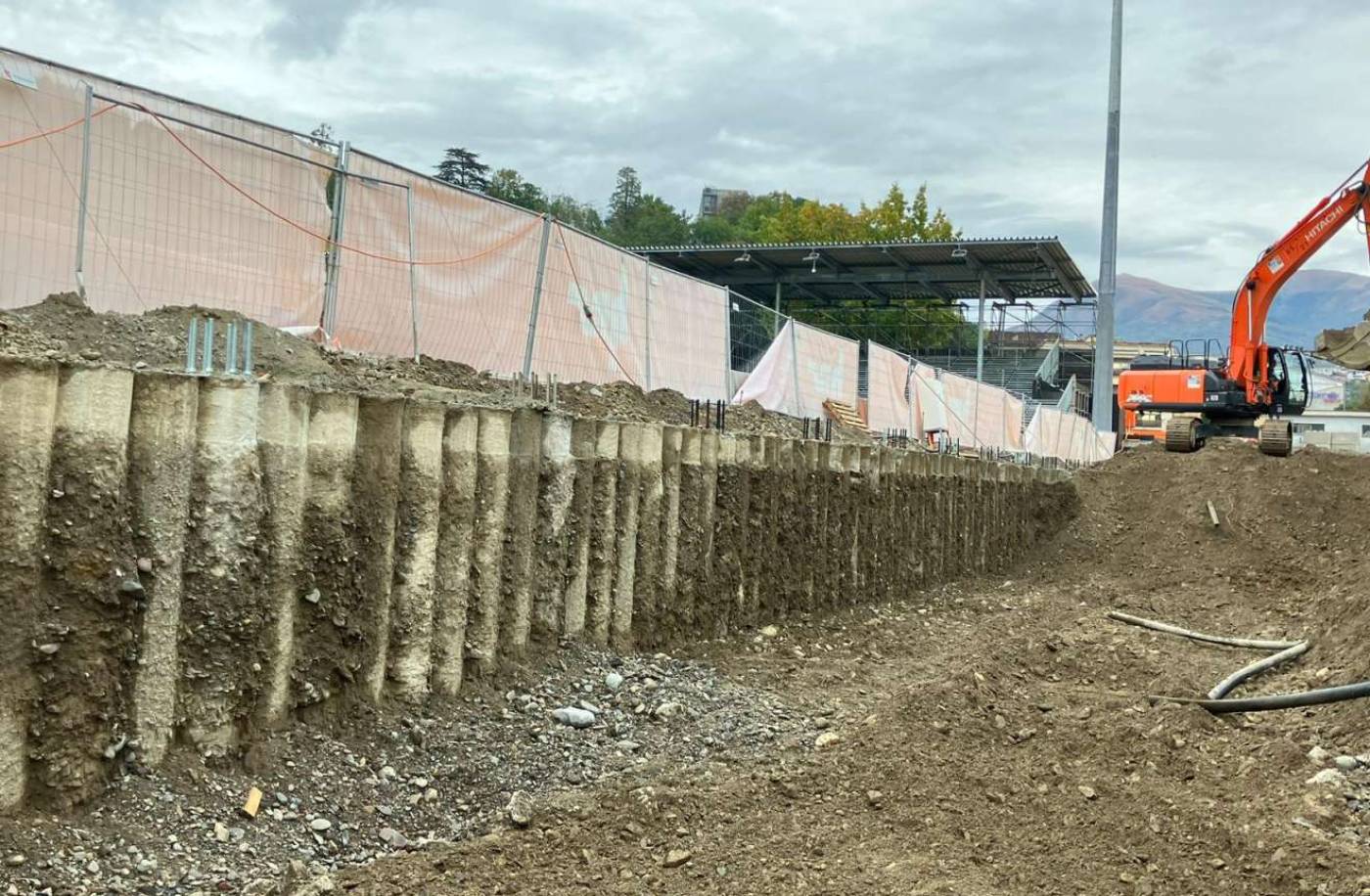 Für den Bau des neuen Fussballstadions des FC Lugano (Polo sportivo e degli eventi- Lugano, PSE) musste unmittelbar neben den Seitenlinien des bestehenden Fussballstadions eine rund 8.5 m tiefe Baugrube erstellt werden.